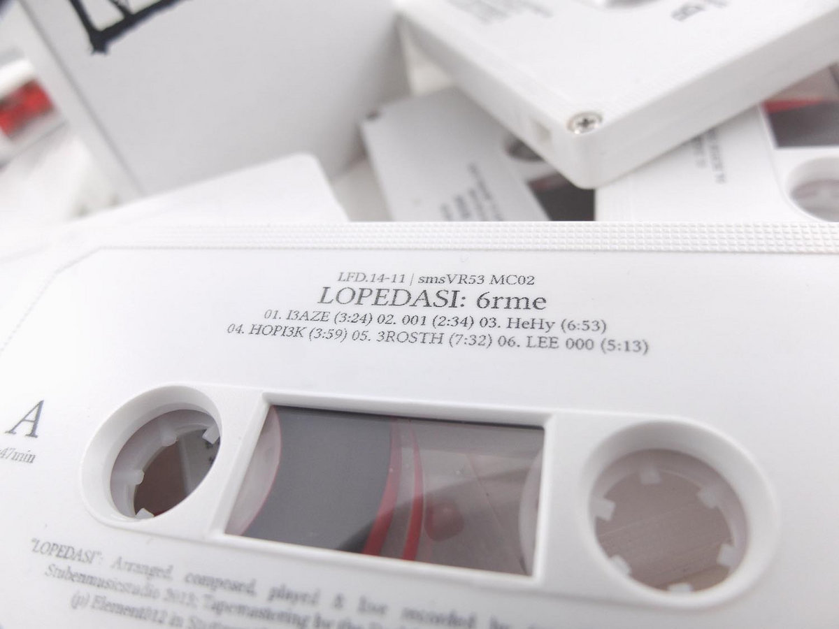 I found some limited lopedasi 6rme tapes during my last clean up... released 2014 as part 2 of a limited tape series, part 1 was the album decay by trackscan. Each tape is hand assembled and numbered - only 50 pieces! Take you chance and get one of the last tapes available...